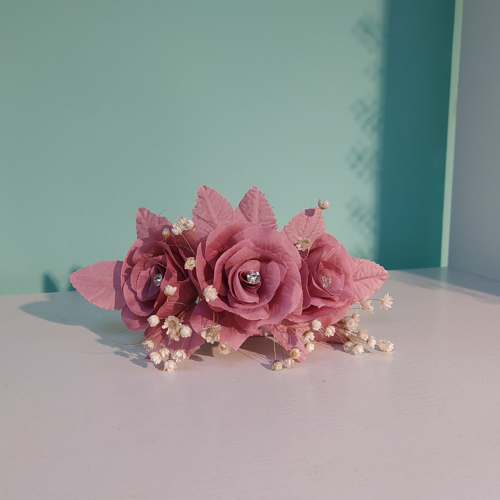 Arranjo de flor tafetá com cristais 13B5A6B