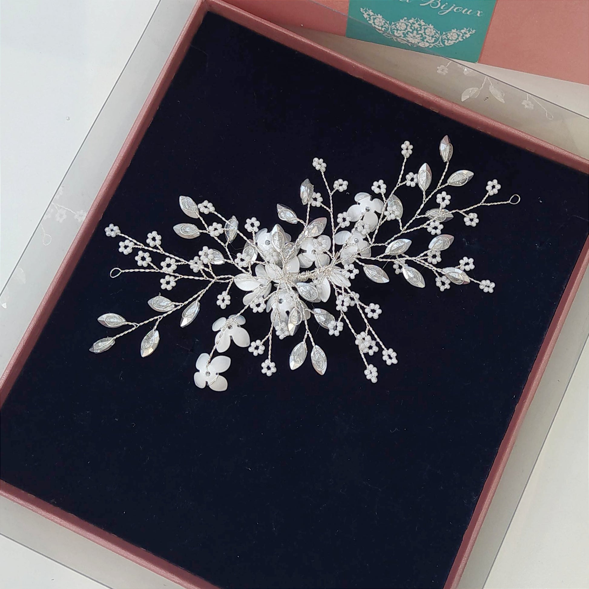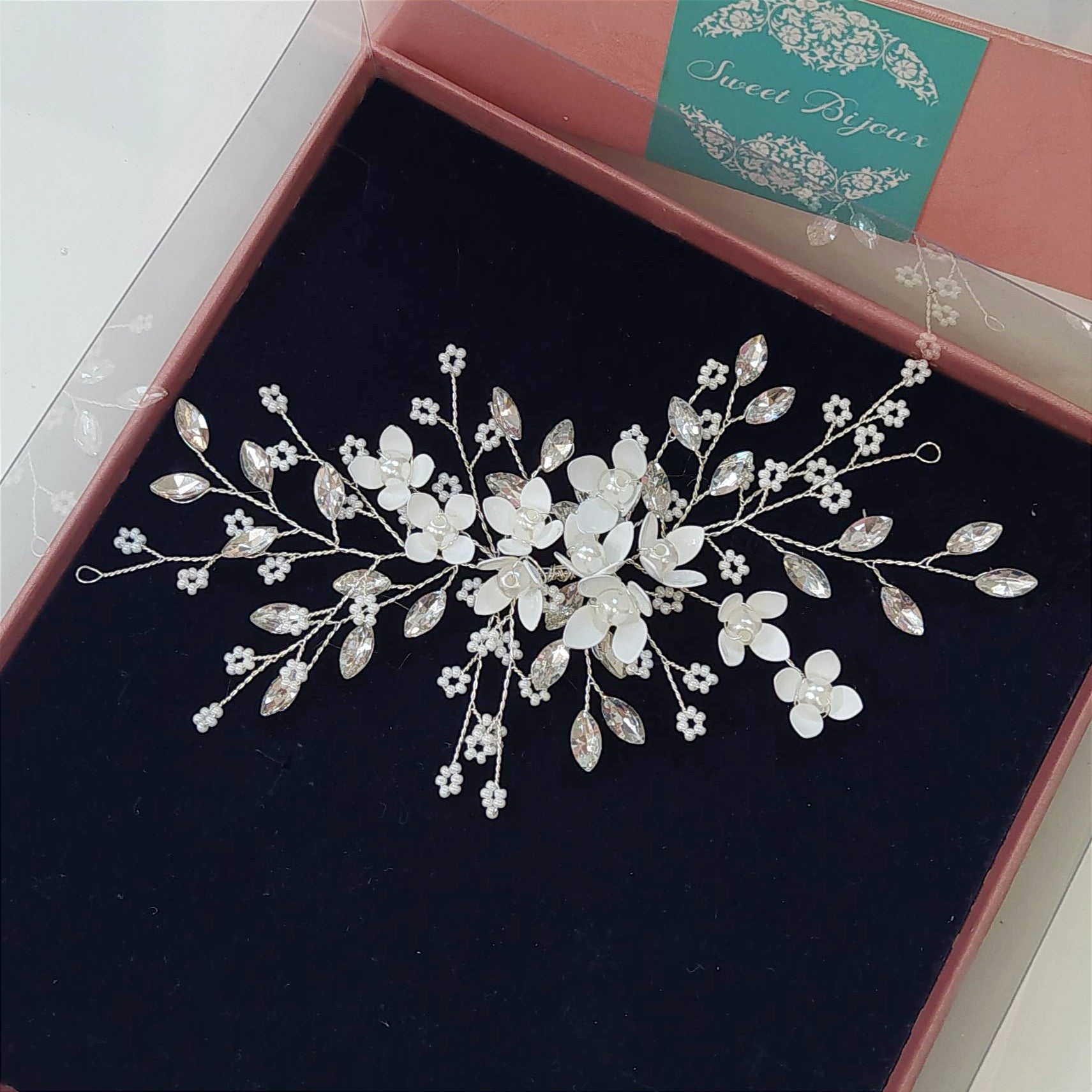 Arranjo maleável de pérola com cristal.