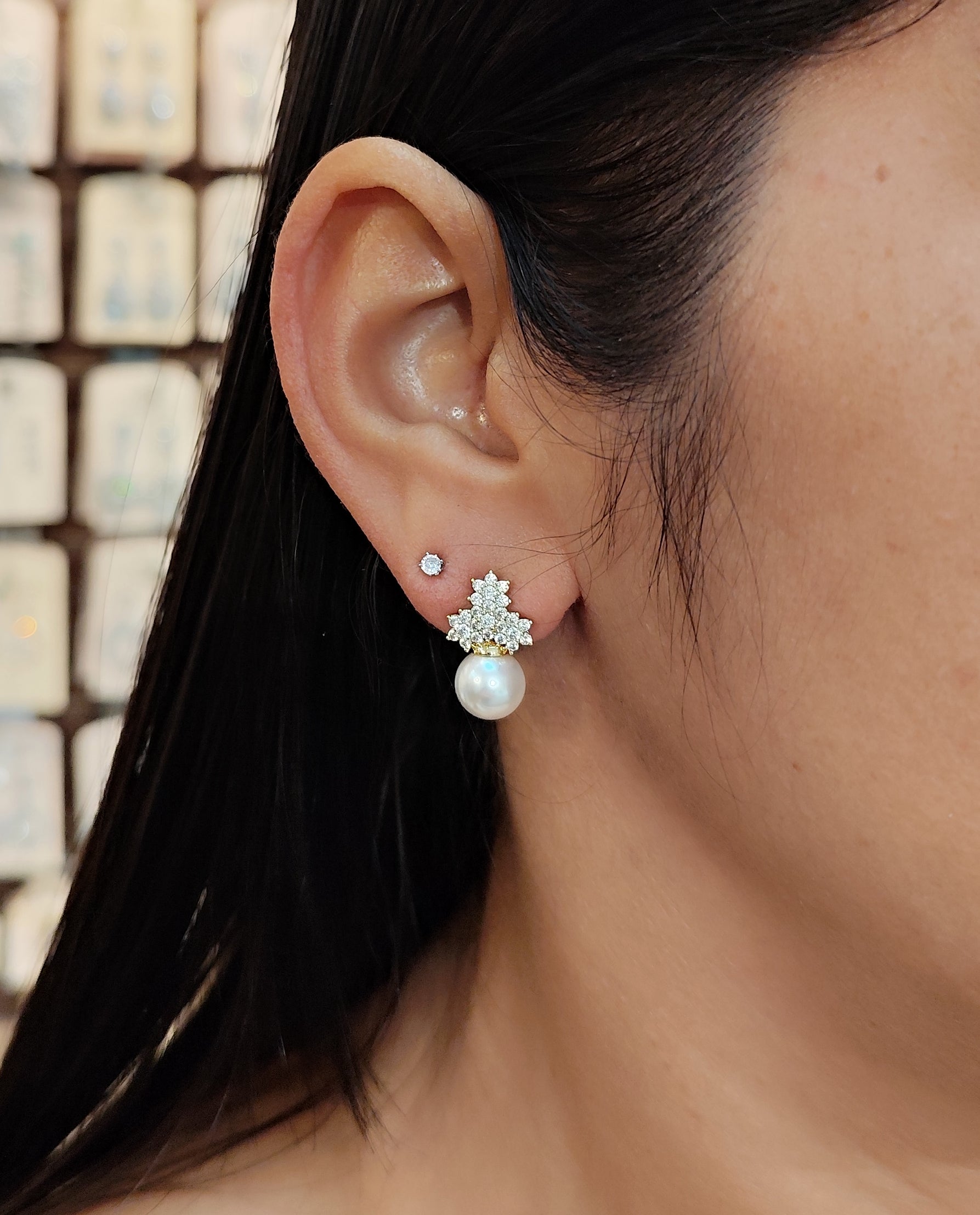 Brinco de pérola com zircônia 20460FB