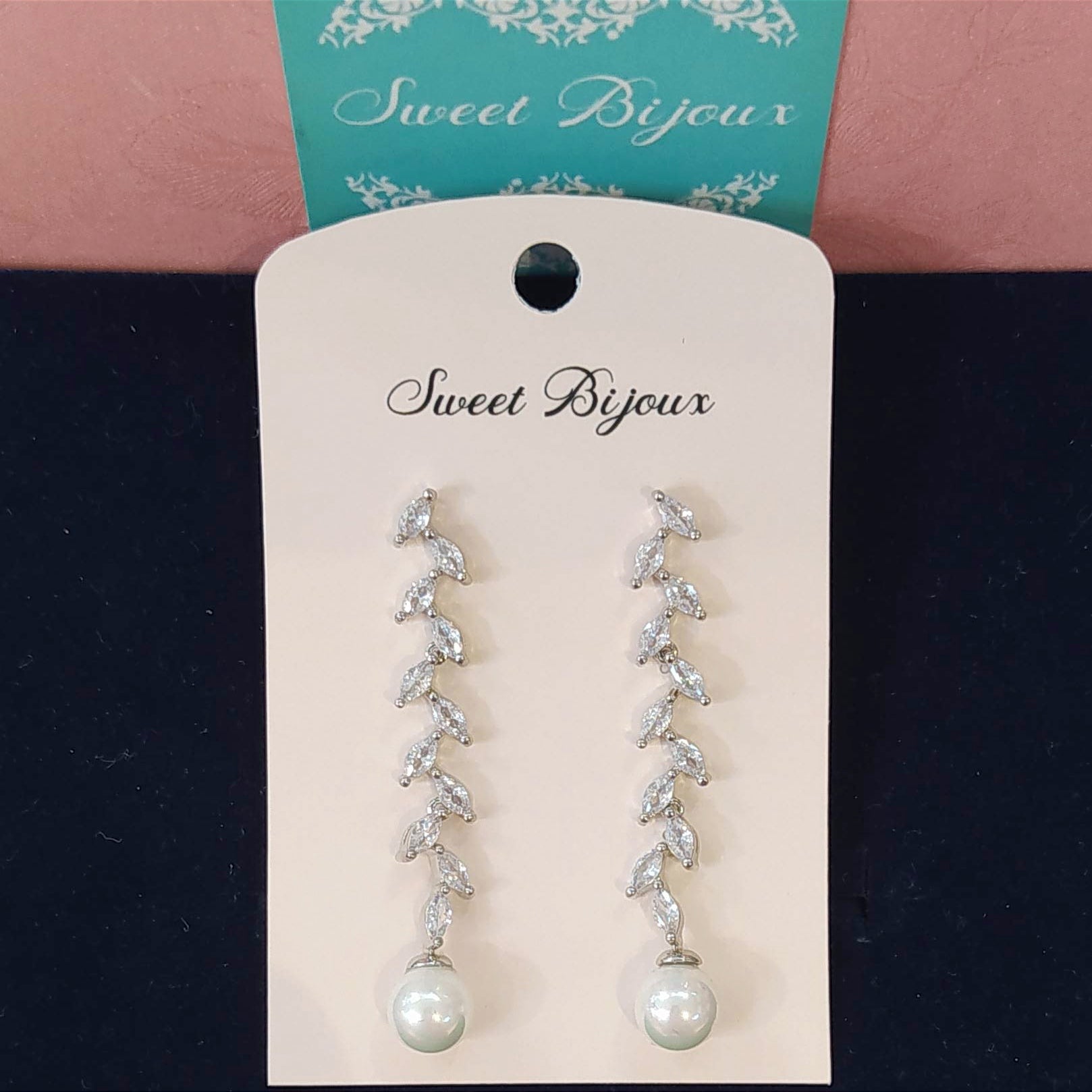 Brinco de pérola com folhas de zircônia 1D65647