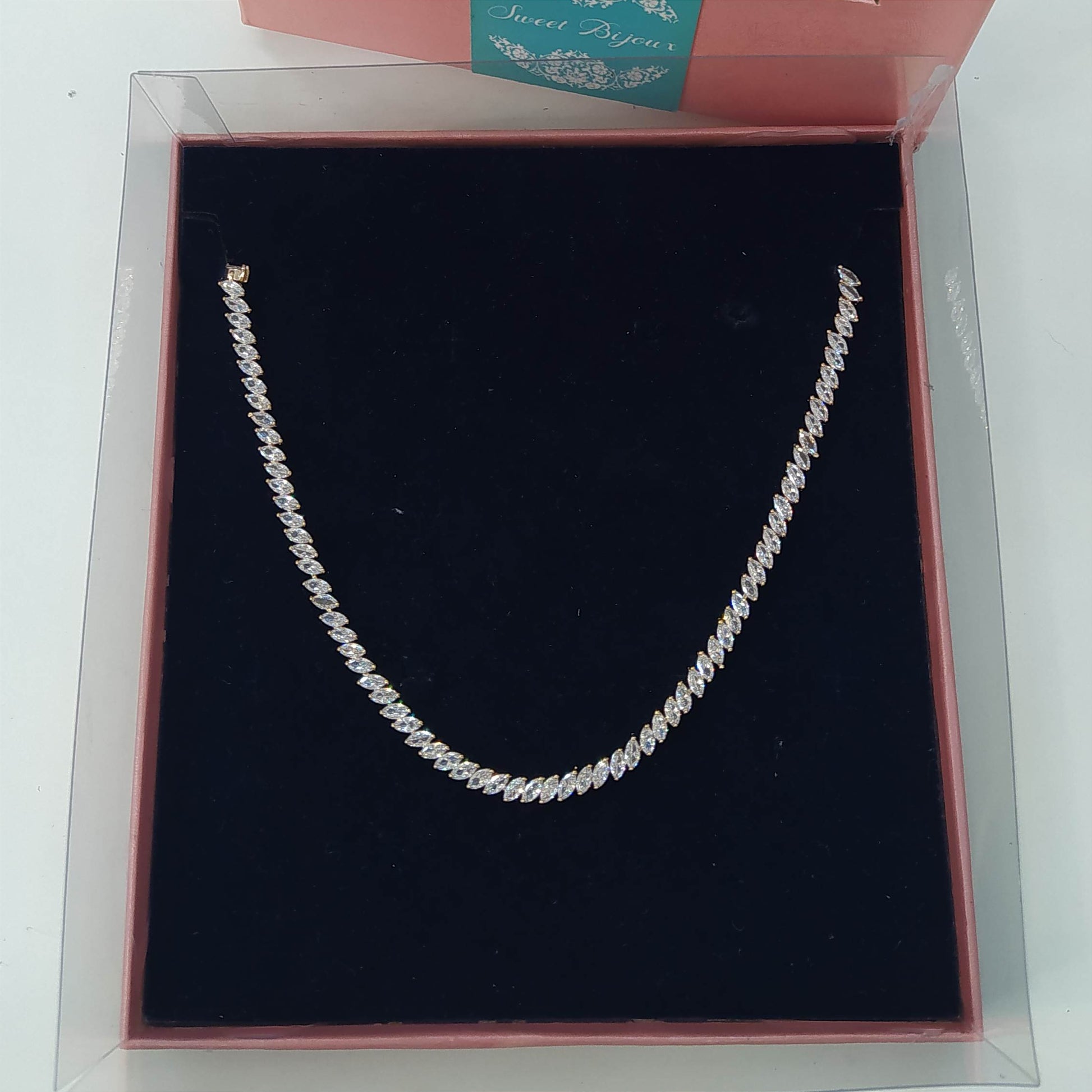 Colar em semijoia com pedra de zircônia e banho dourado..