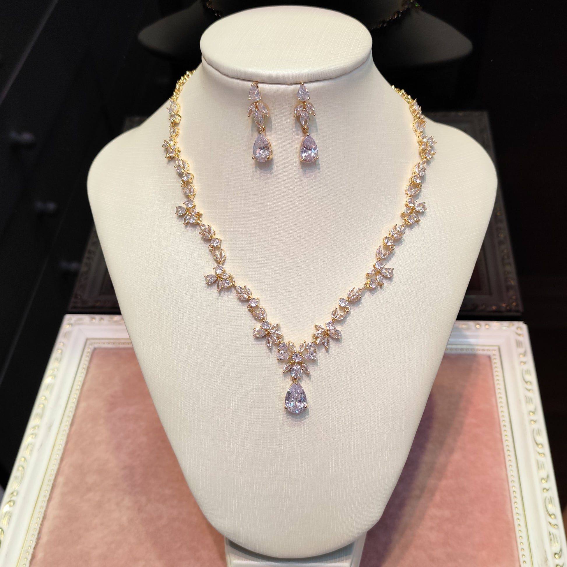 Conjunto colar e brinco de zircônia dourado 207C6CF
