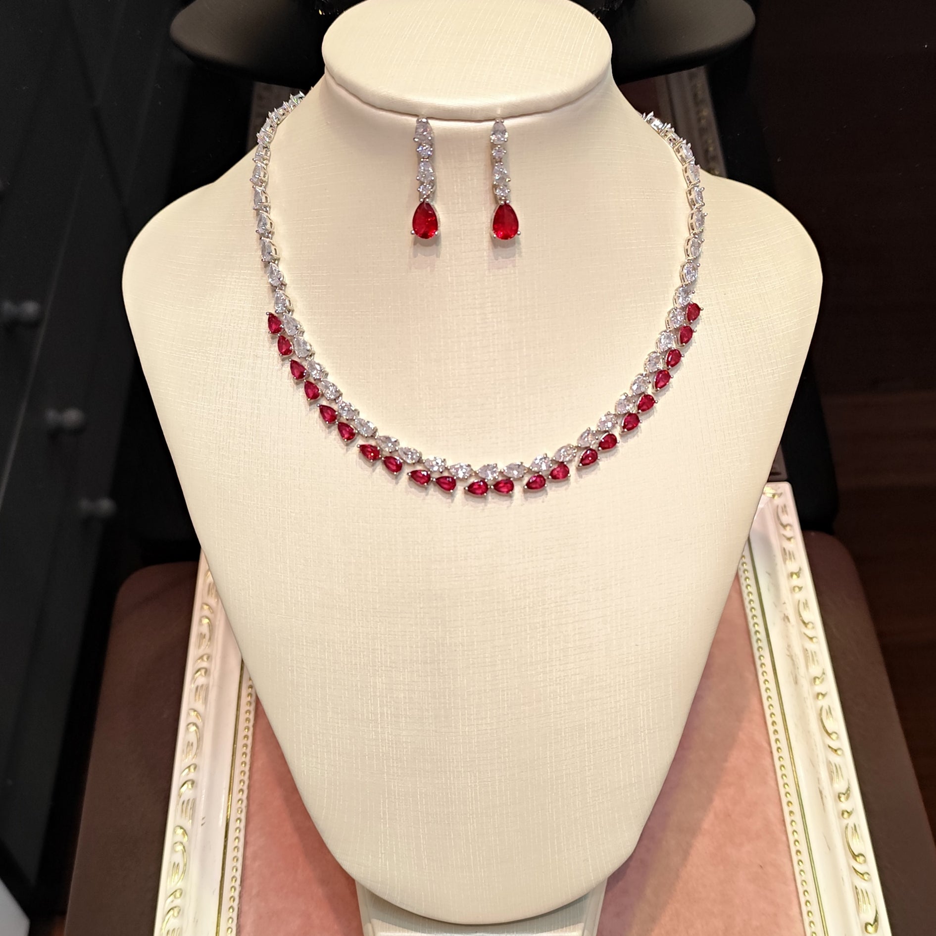Conjunto colar e brinco de zircônia vermelho 2076071