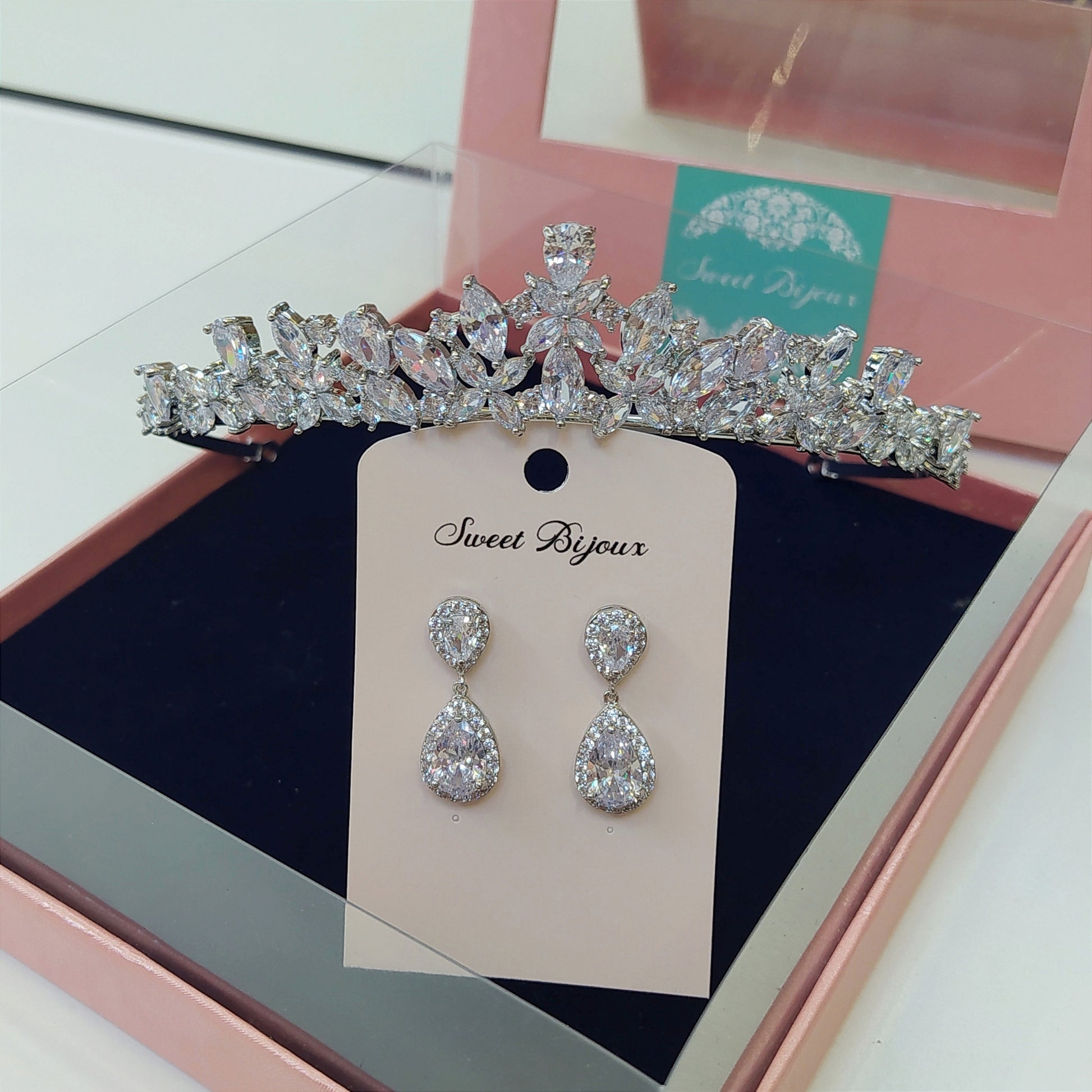 Conjunto de coroa e brinco de zircônia