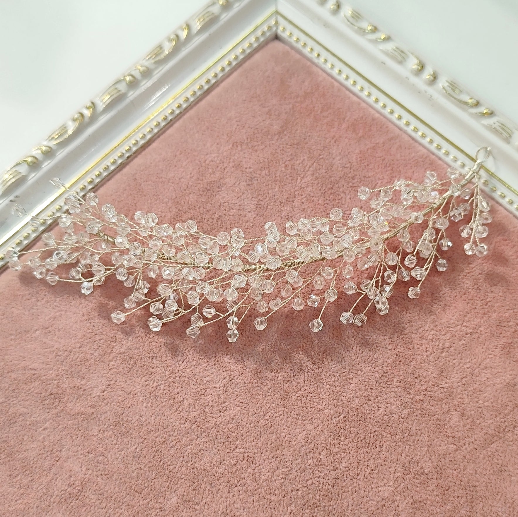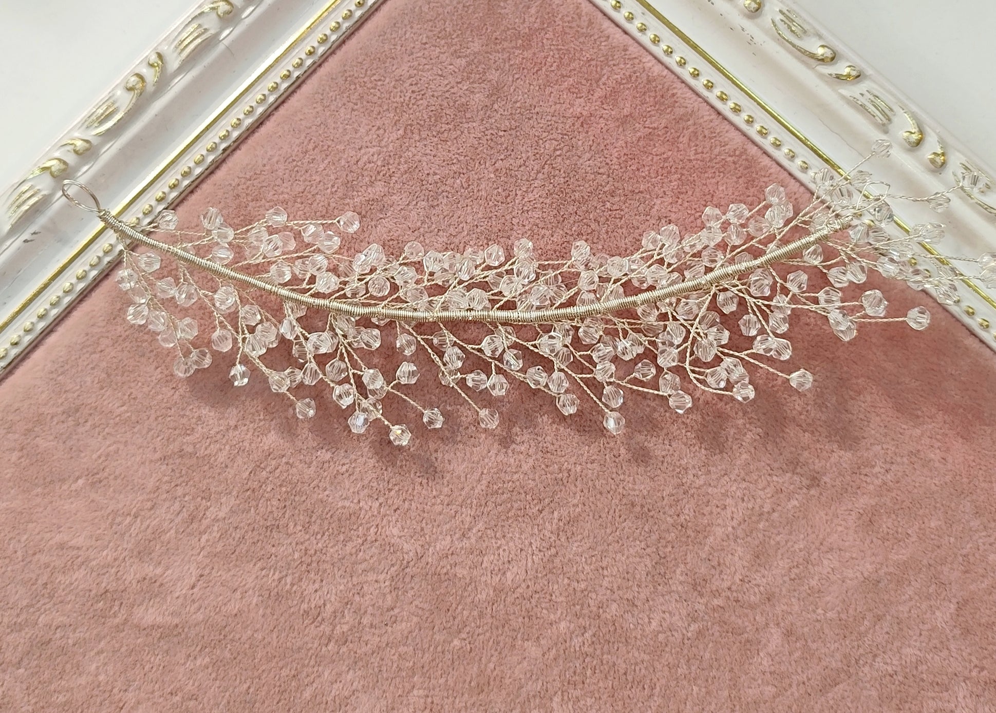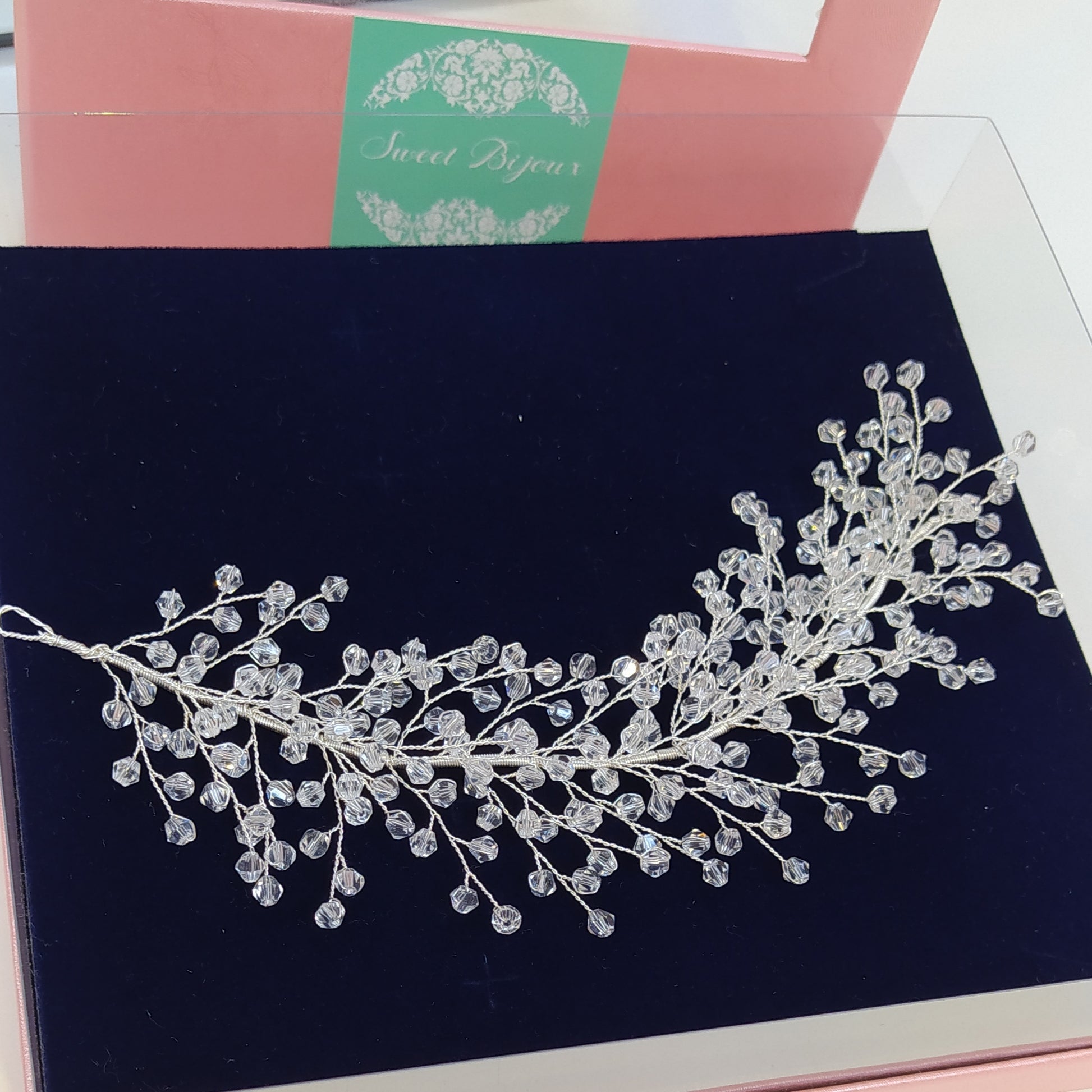 Arranjo de fio de cobre banhado a prata com cristais e para penteado.