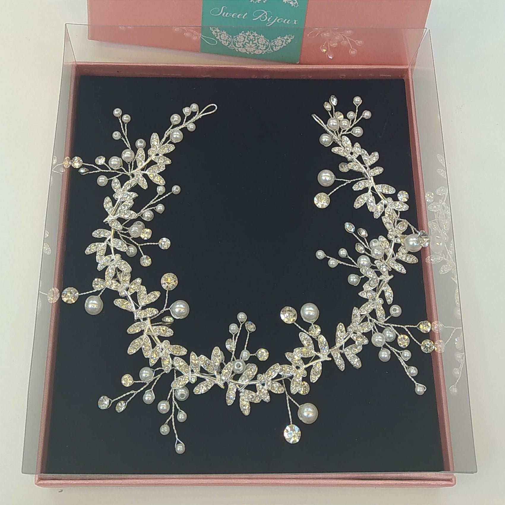 Fio de cristais e pérolas com banho de prata