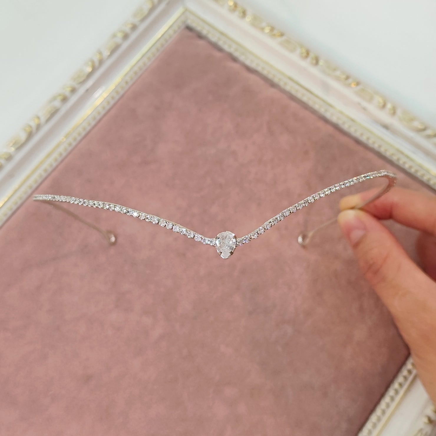 Testeira em semijoia, pedra de zircônia com banho de prata.