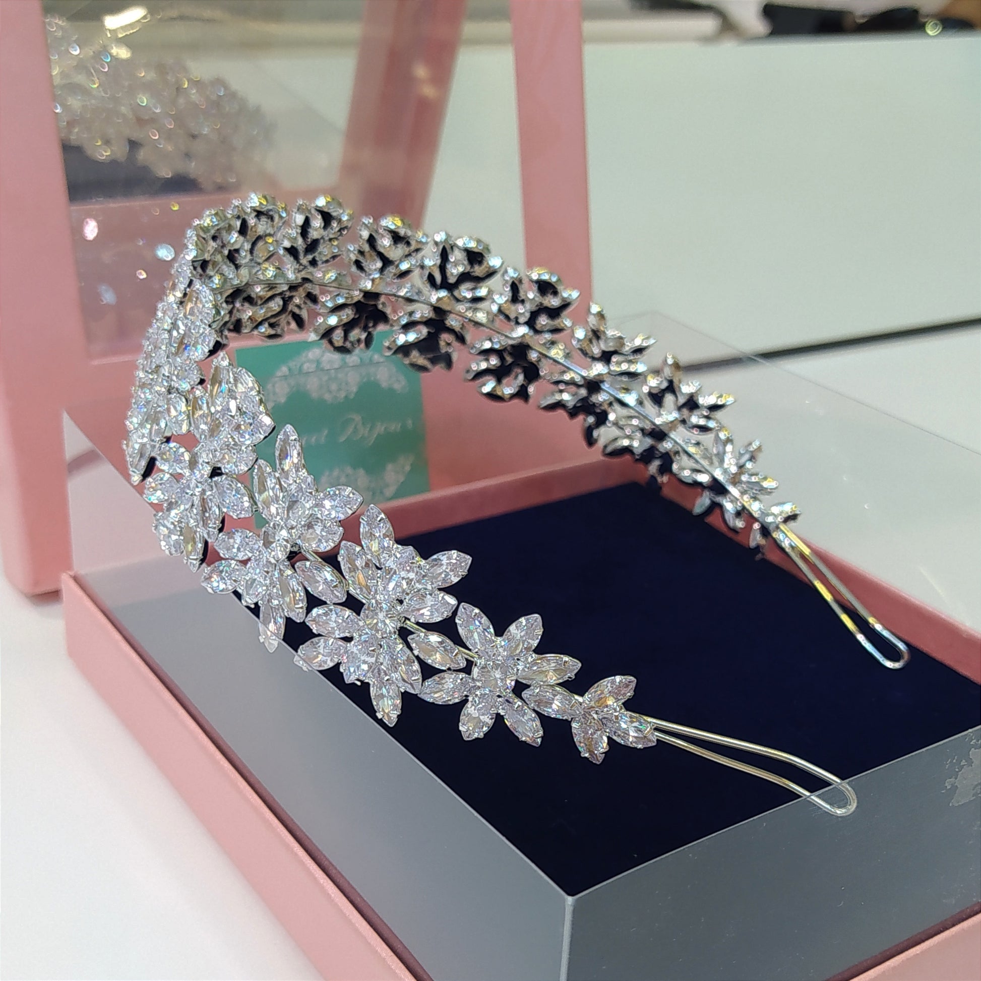Tiara de zircônia maleável com banho de prata.