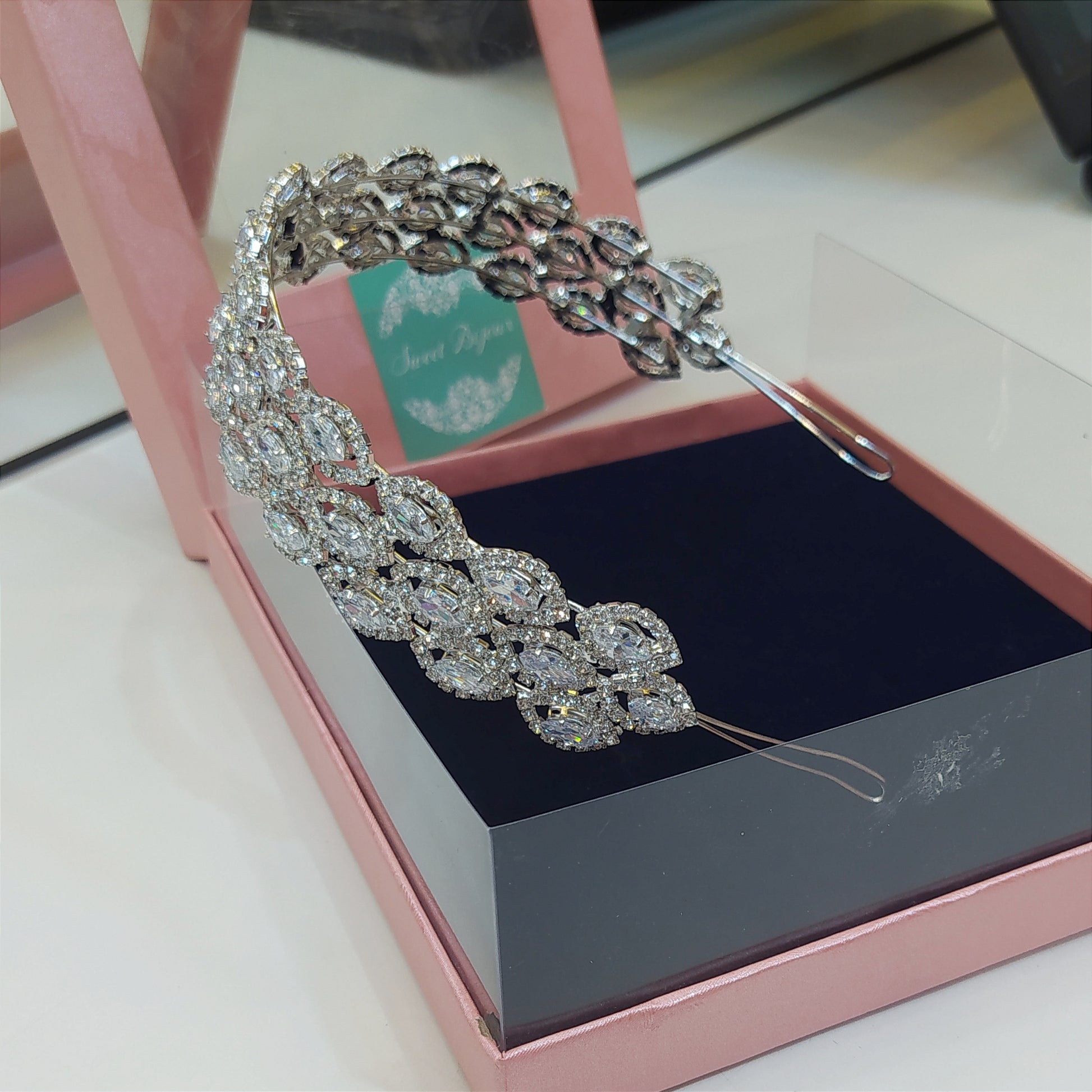 Tiara maleável de zircônia com banho de prata.