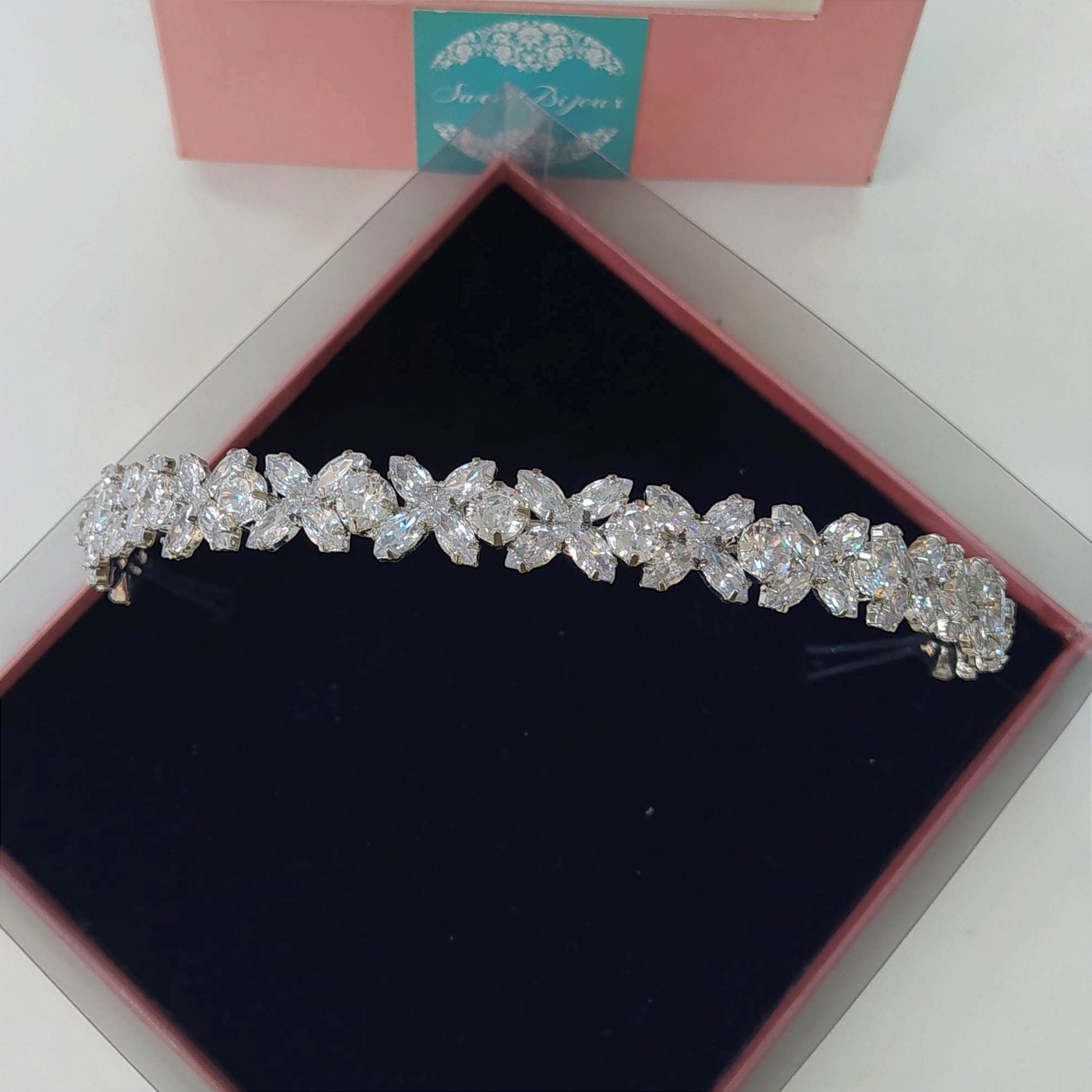 Tiara de zircônia em semijoia com banho de prata.