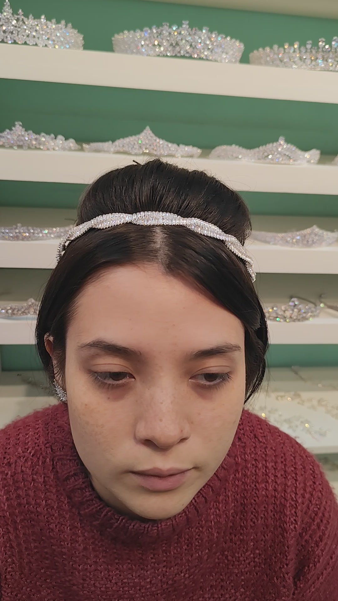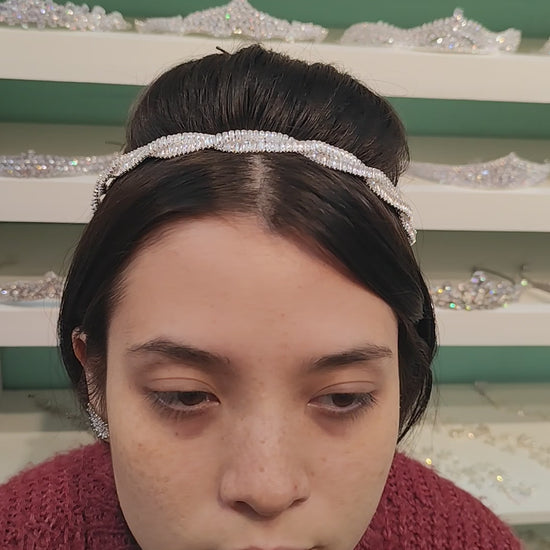 Tiara de zircônia com banho de prata envernizado.