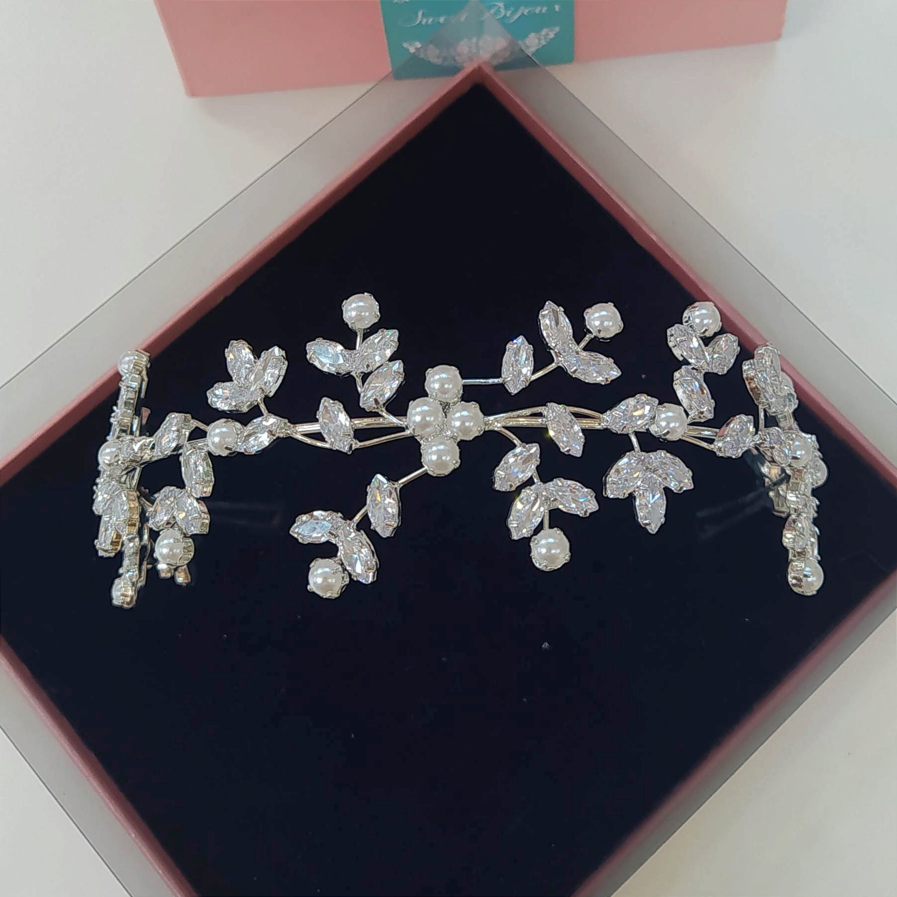 Tiara folhas de zircônia com pérola 1EB4815