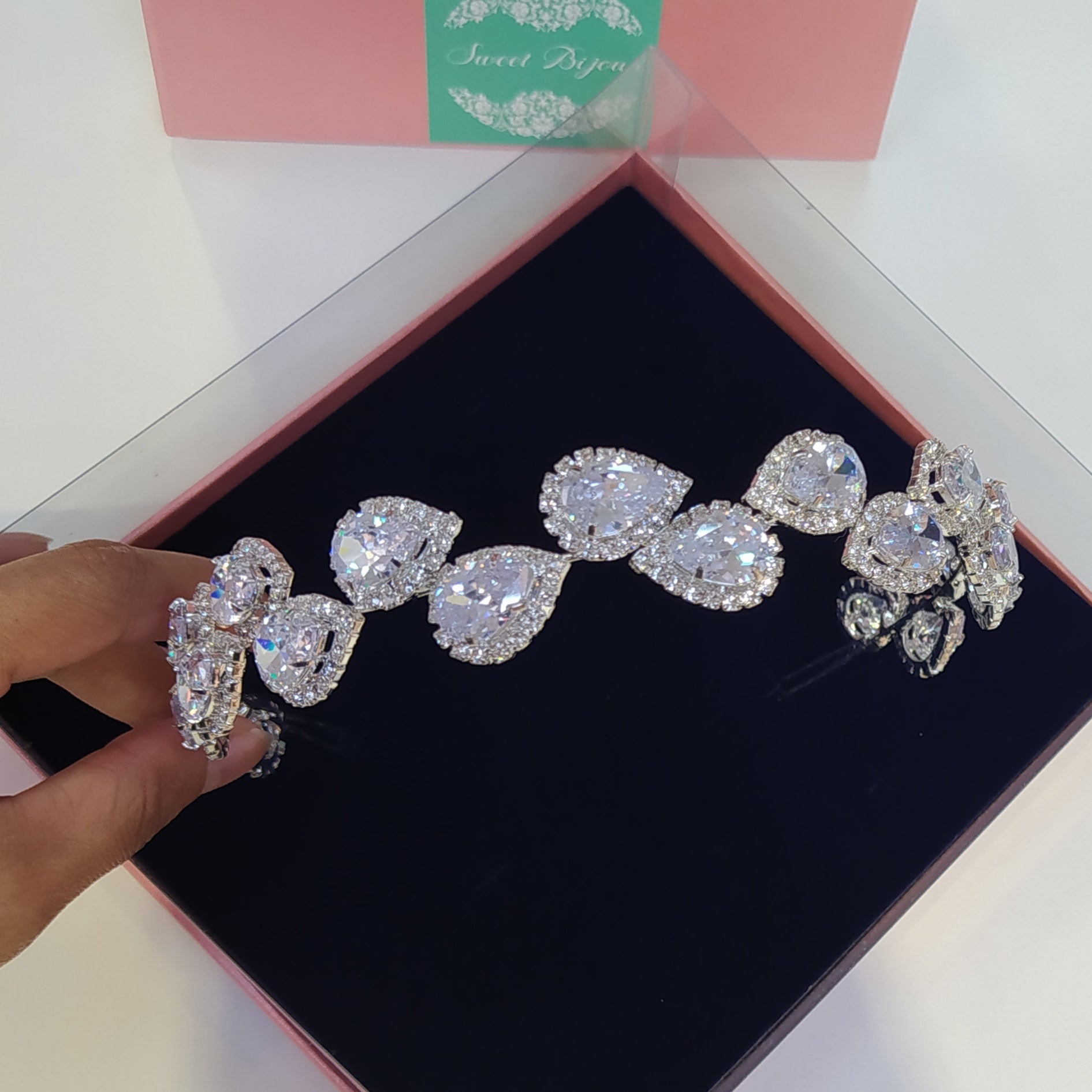 Tiara de zircônia maleável com banho de prata.