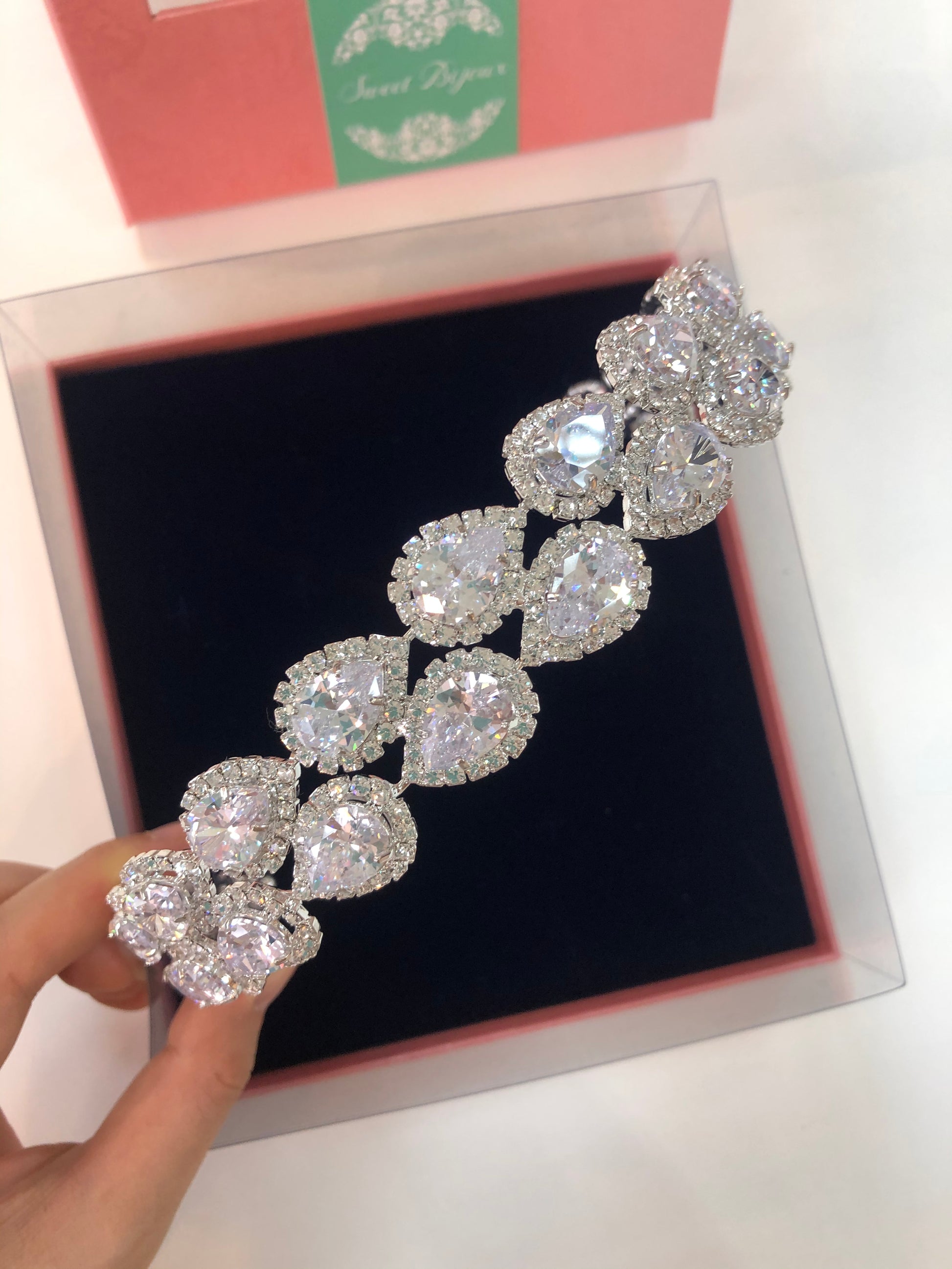 Tiara de zircônia maleável com banho de prata.