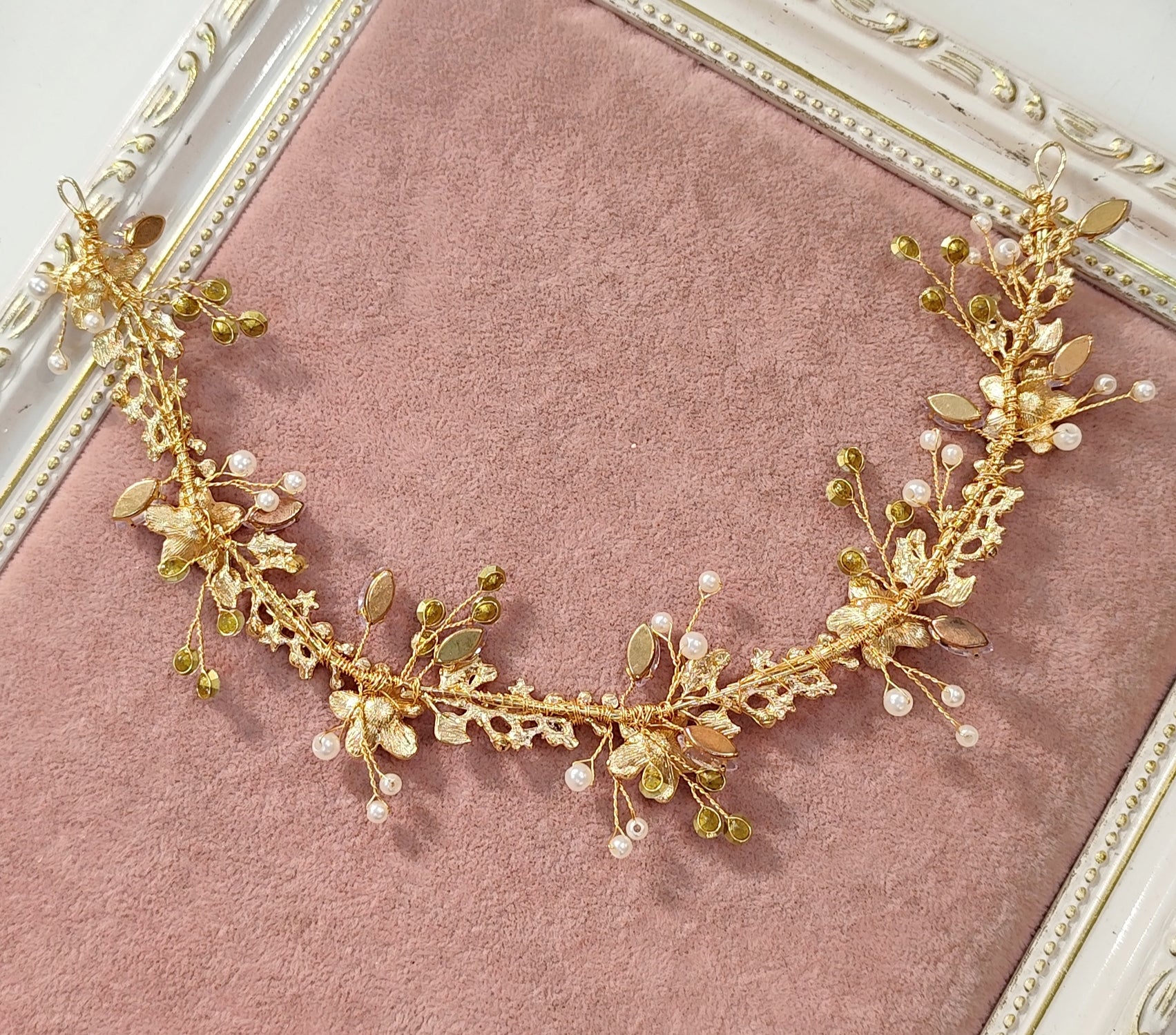 Tiara maleável de cristais e pérola dourada 1D7834F