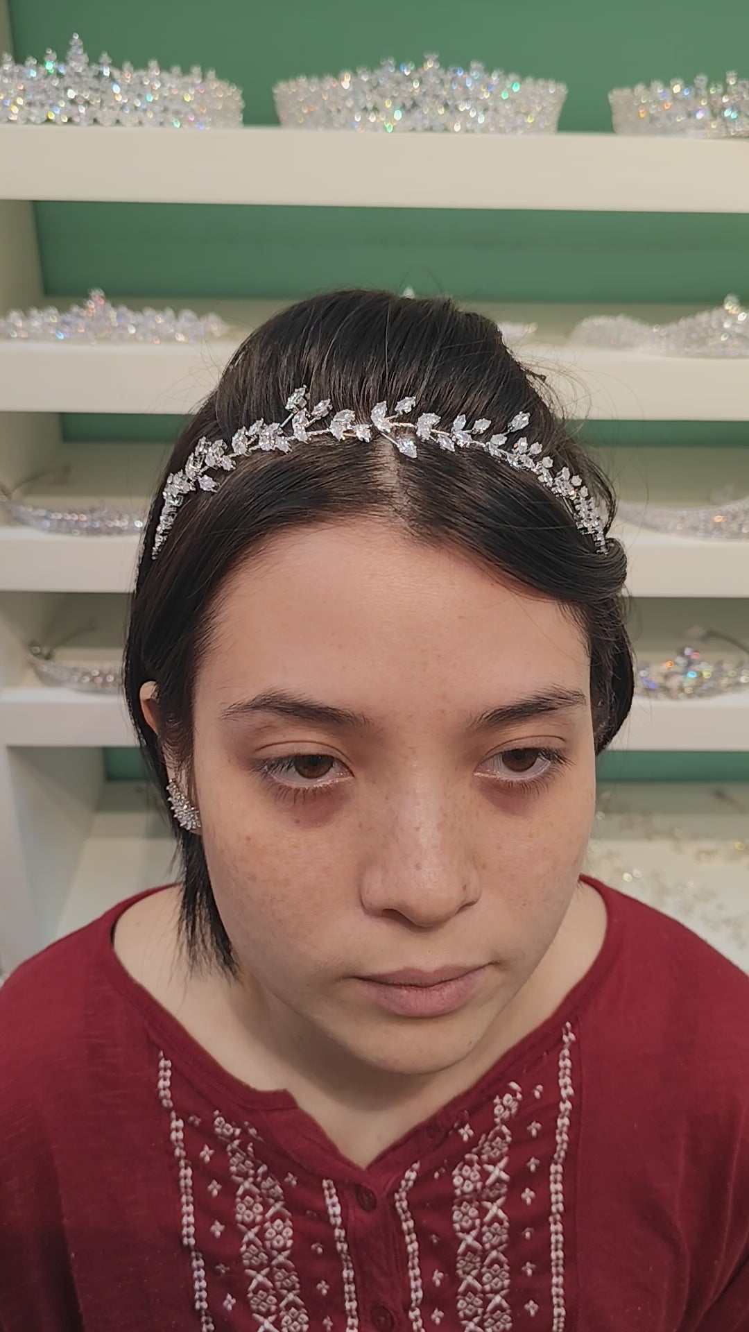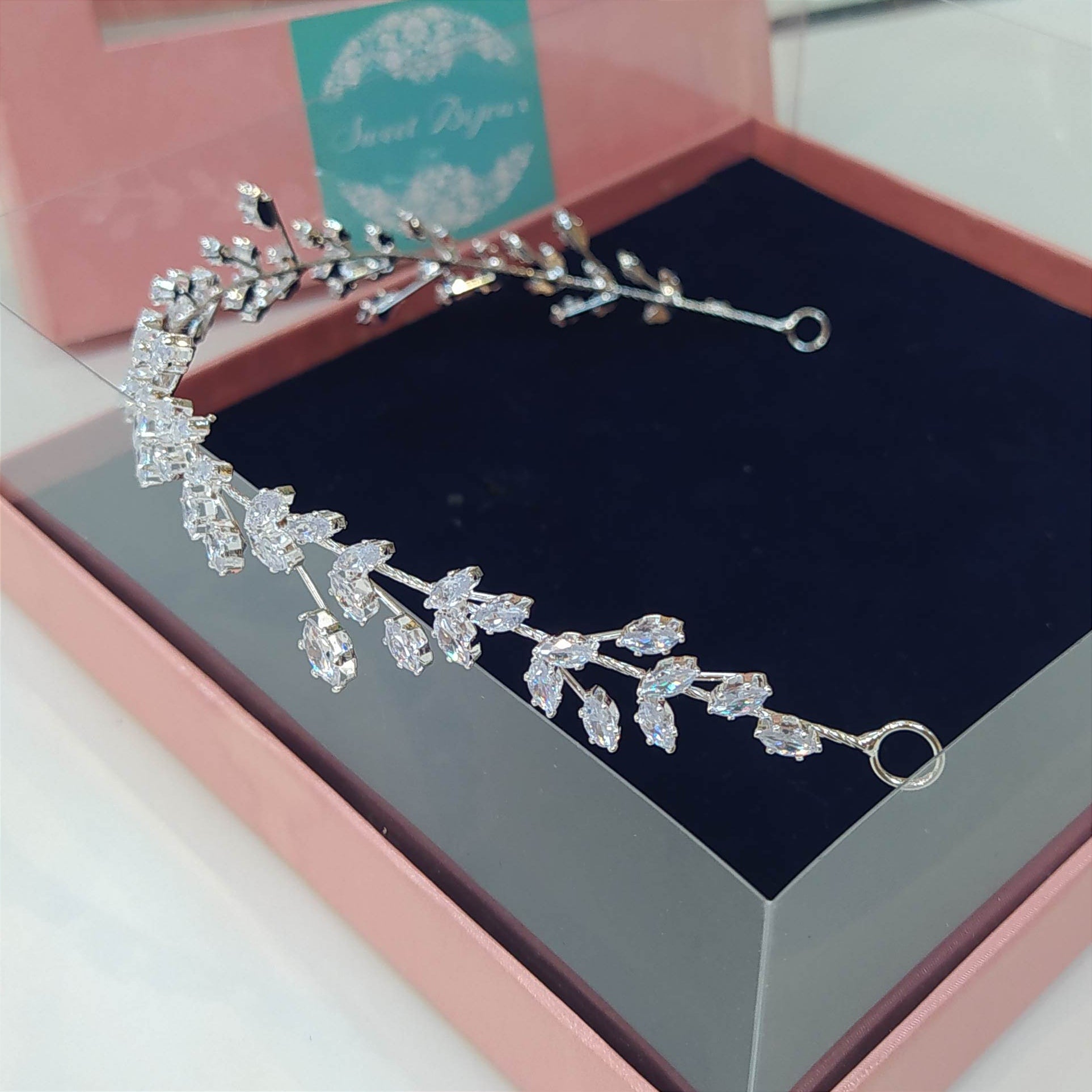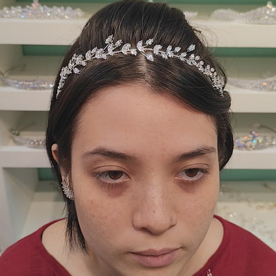 Tiara maleável de zircônia com banho de ródio.